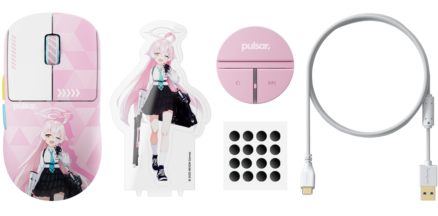 Pulsar proudly presents its official collaboration with Blue Archive, bringing the charm of Abydos to a special-edition gaming mouse. This collection blends Pulsar’s performance-driven design with the unique appeal of Blue Archive to deliver a product that feels both collectible and ready for serious play. The edition also debuts a new accessory: a 2-button dongle featuring an acrylic stand-style character illustration that can be displayed on your desk for an extra touch of Blue Archive flair. A collaboration made for both fans and gamers alike.