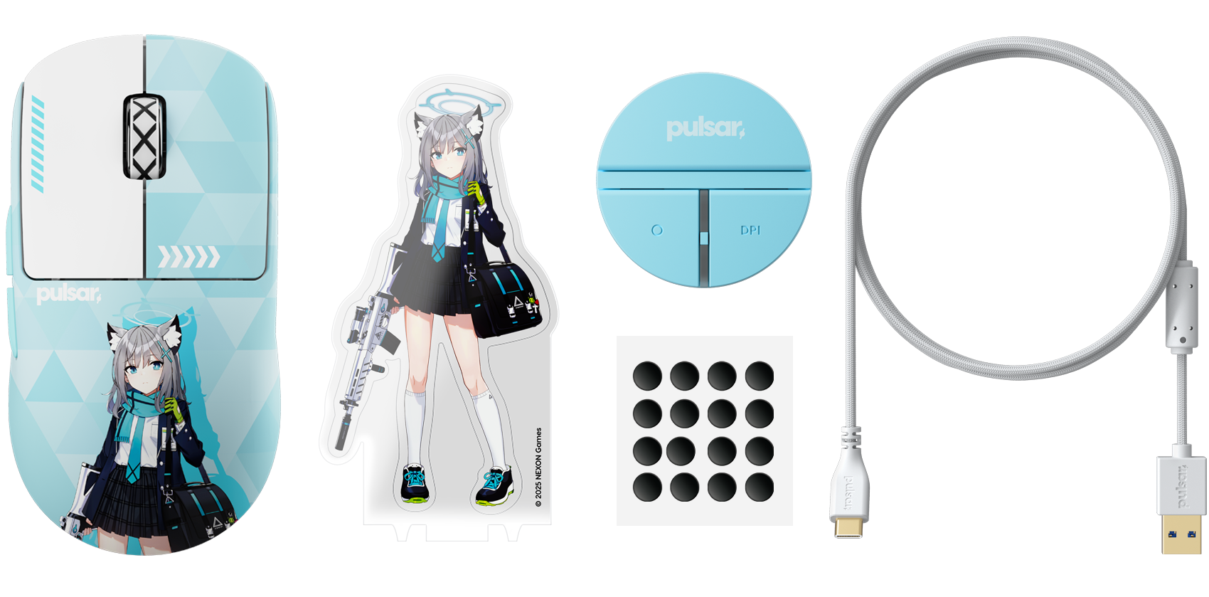 Pulsar proudly presents its official collaboration with Blue Archive, bringing the charm of Abydos to a special-edition gaming mouse. This collection blends Pulsar’s performance-driven design with the unique appeal of Blue Archive to deliver a product that feels both collectible and ready for serious play. The edition also debuts a new accessory: a 2-button dongle featuring an acrylic stand-style character illustration that can be displayed on your desk for an extra touch of Blue Archive flair. A collaboration made for both fans and gamers alike.